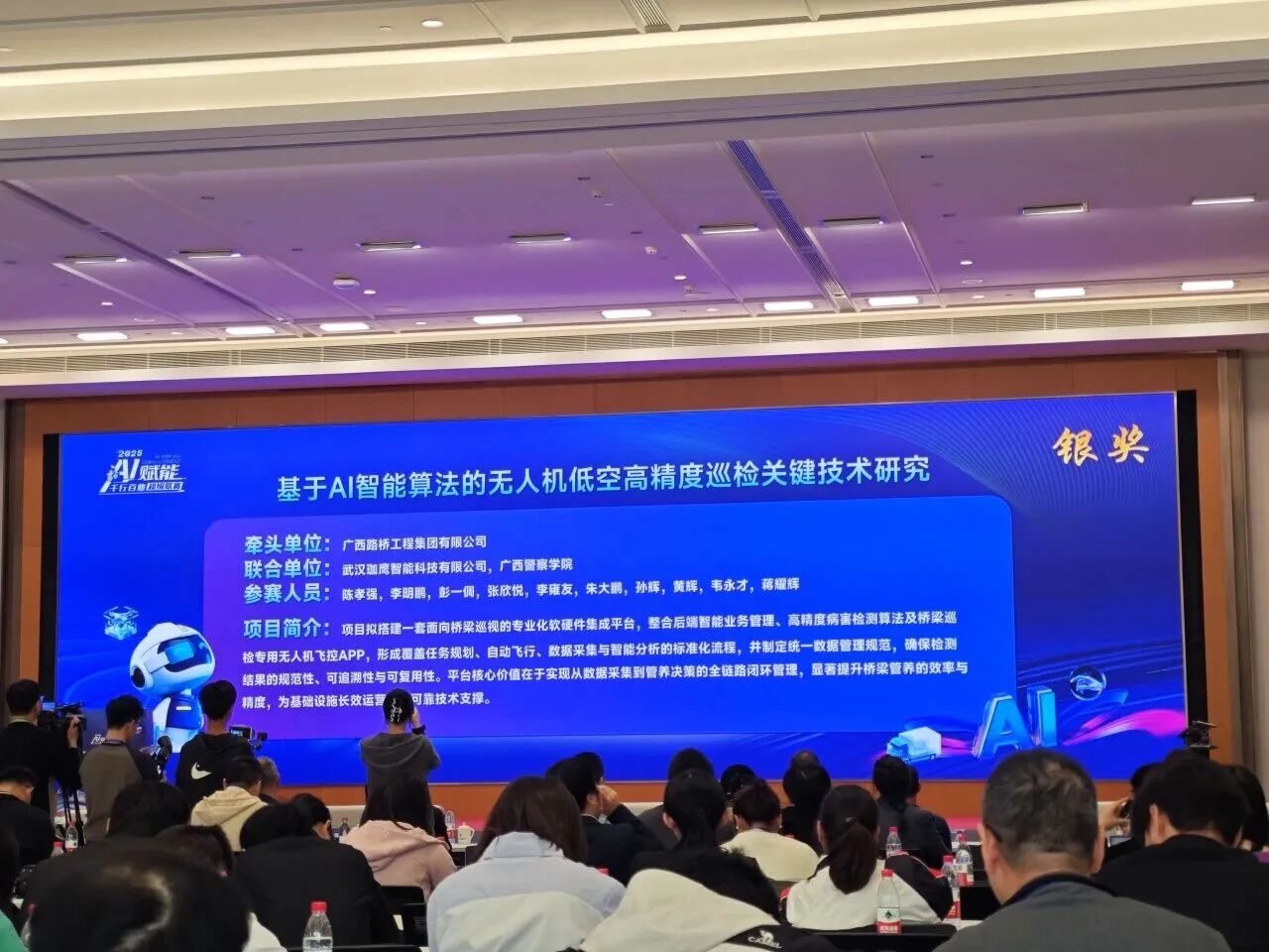 近日,2025年“AI赋能千行百业超级联赛”交通行业创新大赛在南宁开赛。鼎正参股企业武汉珈鹰智能科技有限公司与广西路桥工程集团有限公司联合组队参赛,以综合评分位列前三的优异成绩,荣获2025年“AI赋能千行百业超级联赛”交通行业创新大赛银奖。