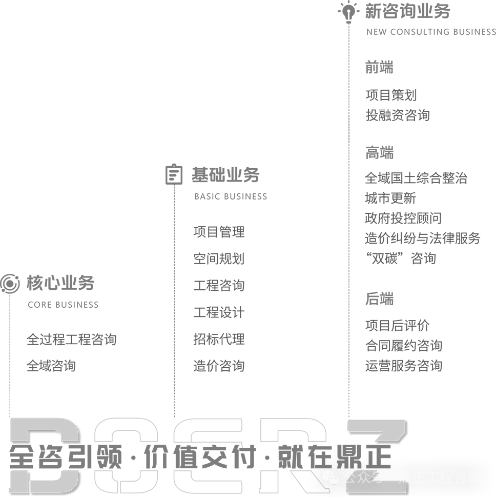 鼎正工程咨询股份有限公司,是一家全牌照·高资信·全产业链的工程咨询及设计一体化的综合性咨询企业。