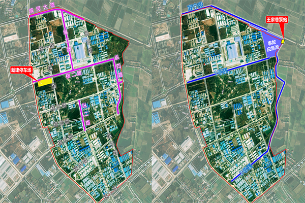 设计理念:本项目总投资1.76亿元,建设内容为园区道路提升5km(道路硬化、路灯、给排水、弱电及电缆敷设);园区防洪排涝及水质提升工程,其中渠道整治9km,王家巷泵站(3.2m³/sx2)新建;敷设供水管道DN300,20000m;敷设供气管道DN300,10000m;新建各类车位278个;园区智能化工程(监控、中控室、设备间等)。